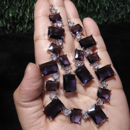Rectangle Purple Crystal Stone Necklace Set